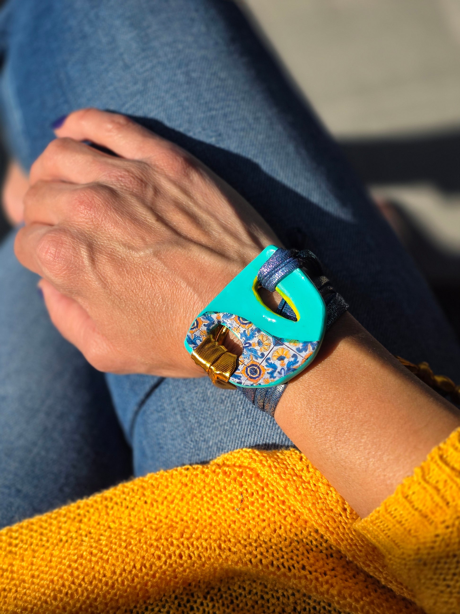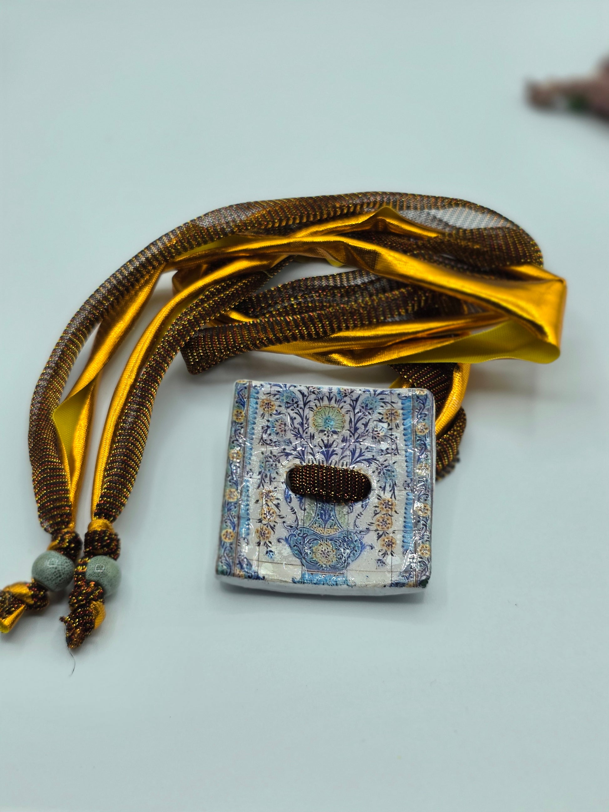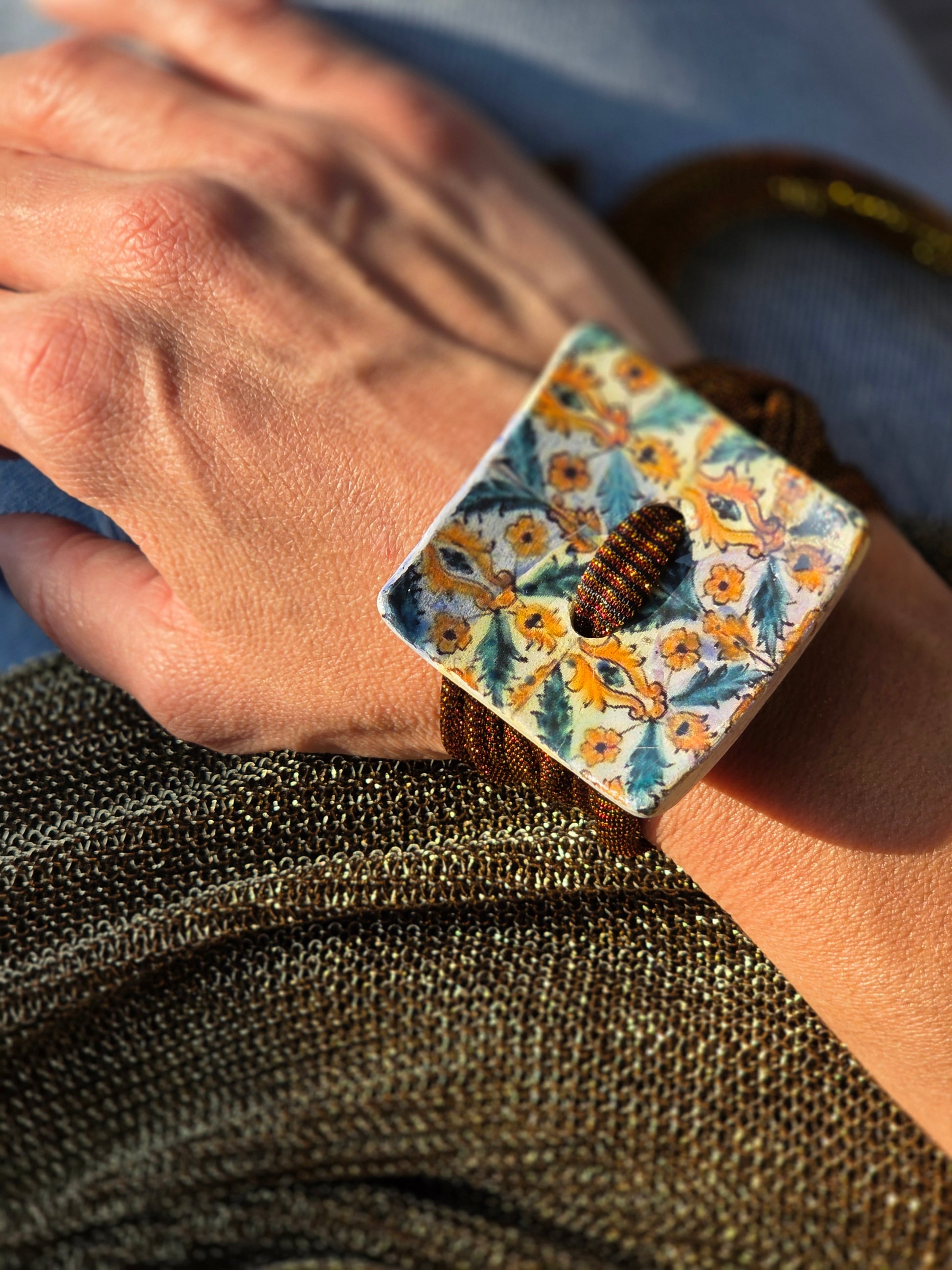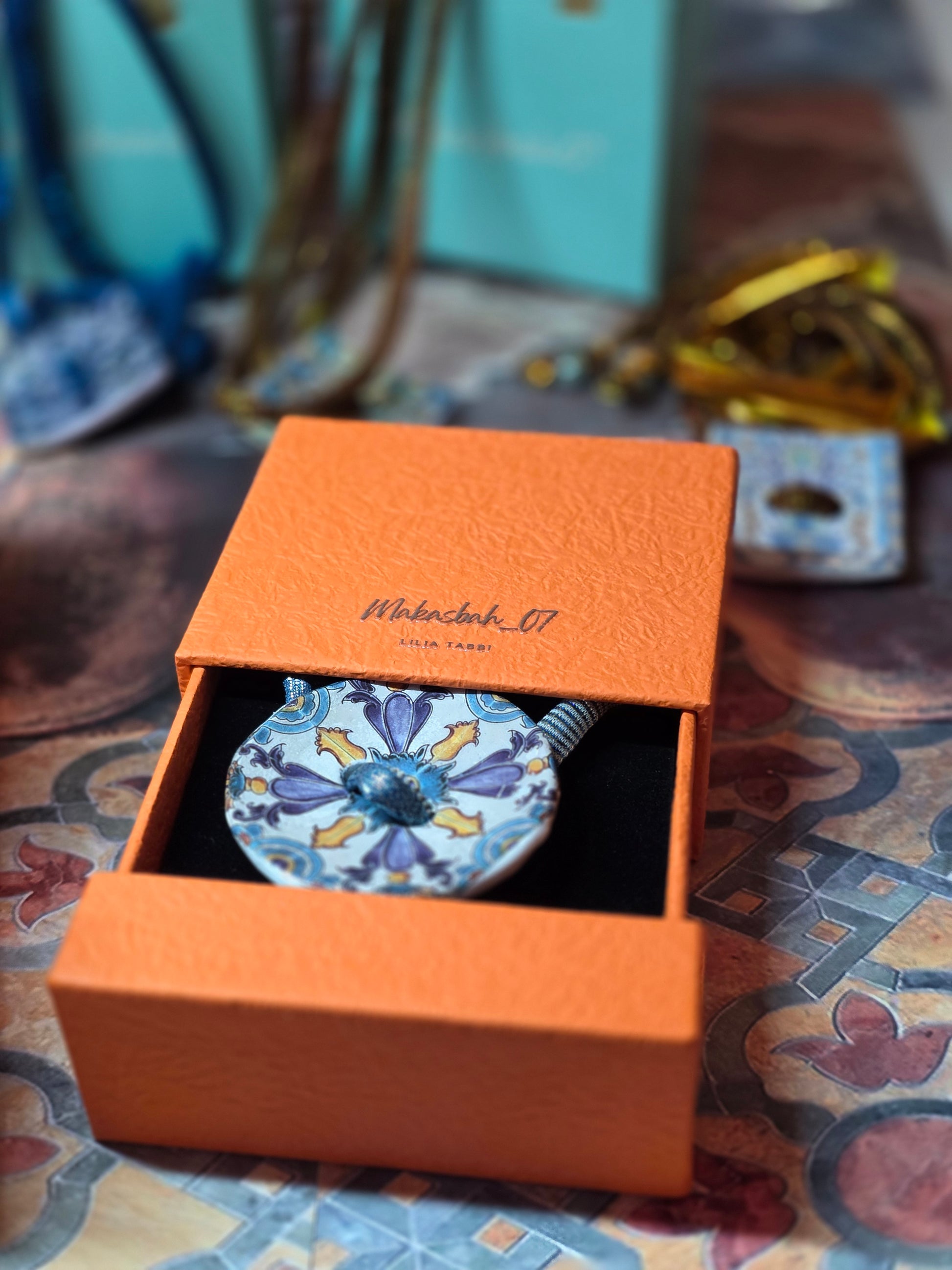 Aggiungi un tocco di autenticità al tuo stile con questo bracelet Zellidj algerino, interamente fatto a mano. Il suo design artigianale permette di trasformarlo facilmente in una collana o in una cintura, offrendo una versatilità unica per ogni occasione. Un gioiello moderno che celebra il ricco patrimonio tradizionale, consentendoti di creare look varie ed eleganti.