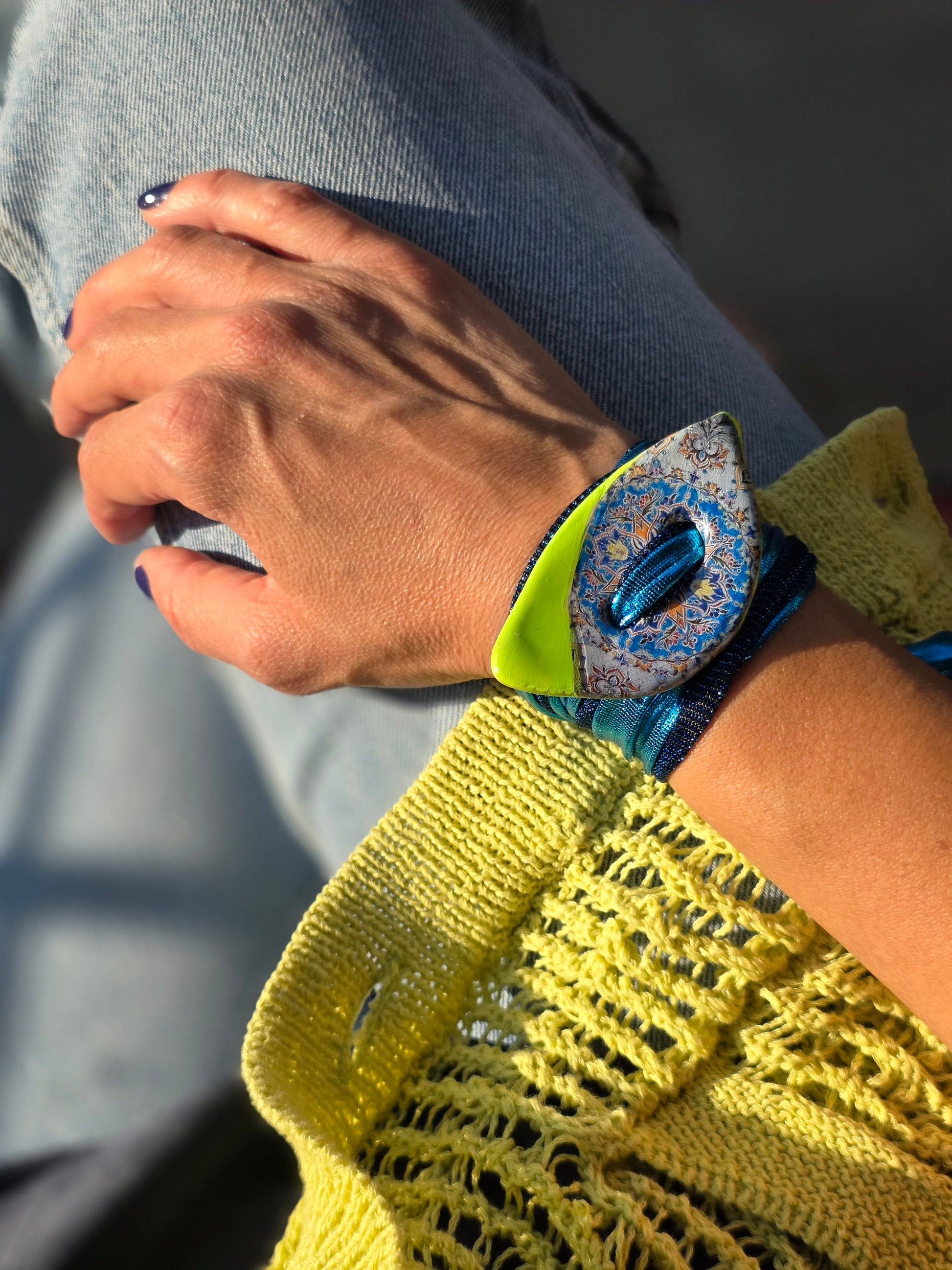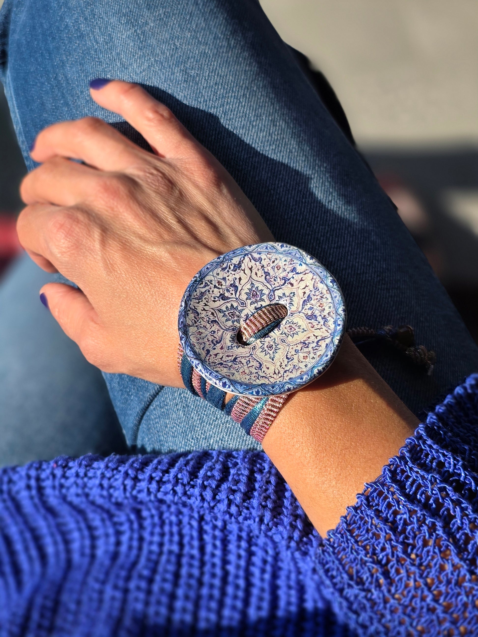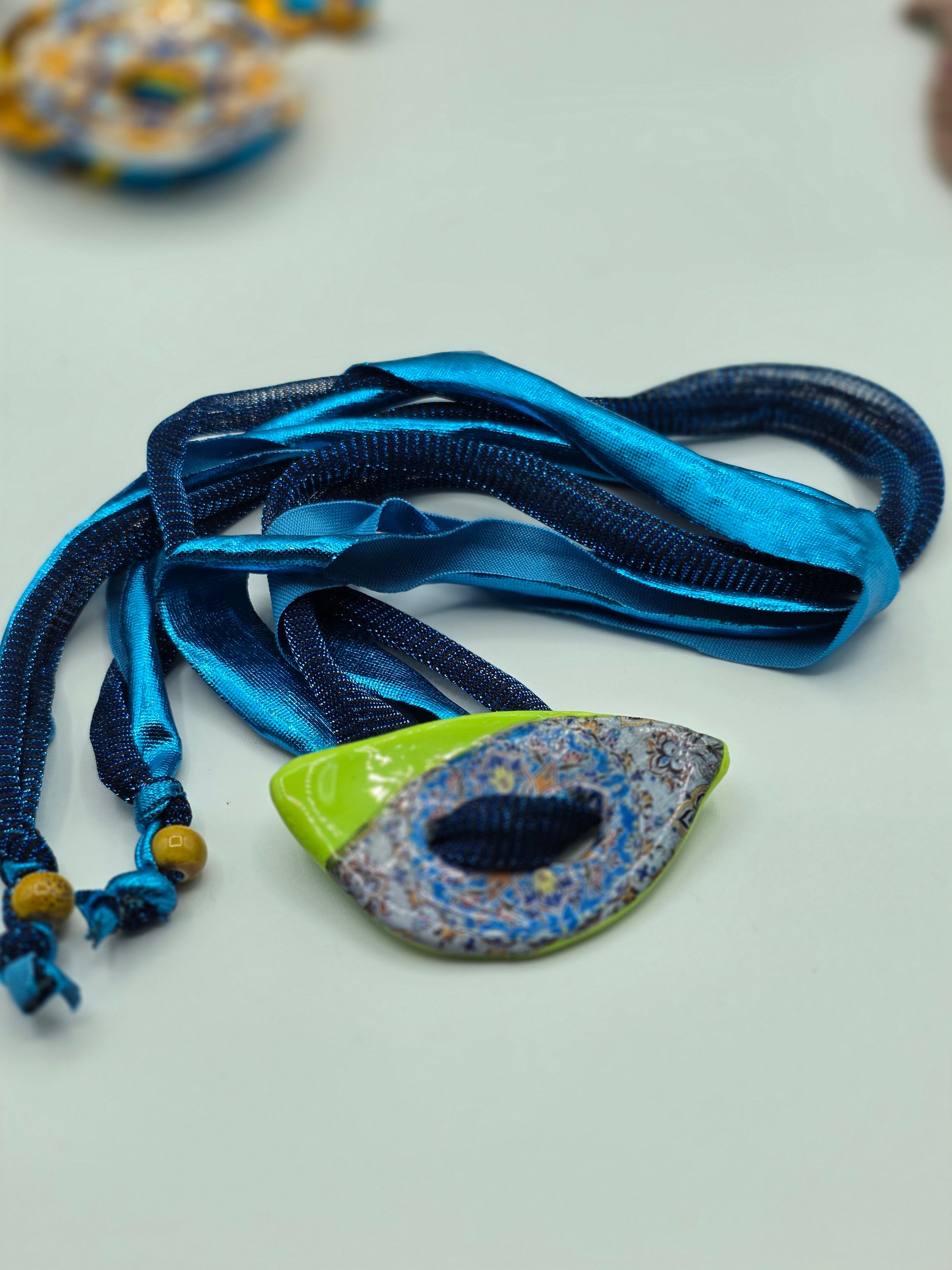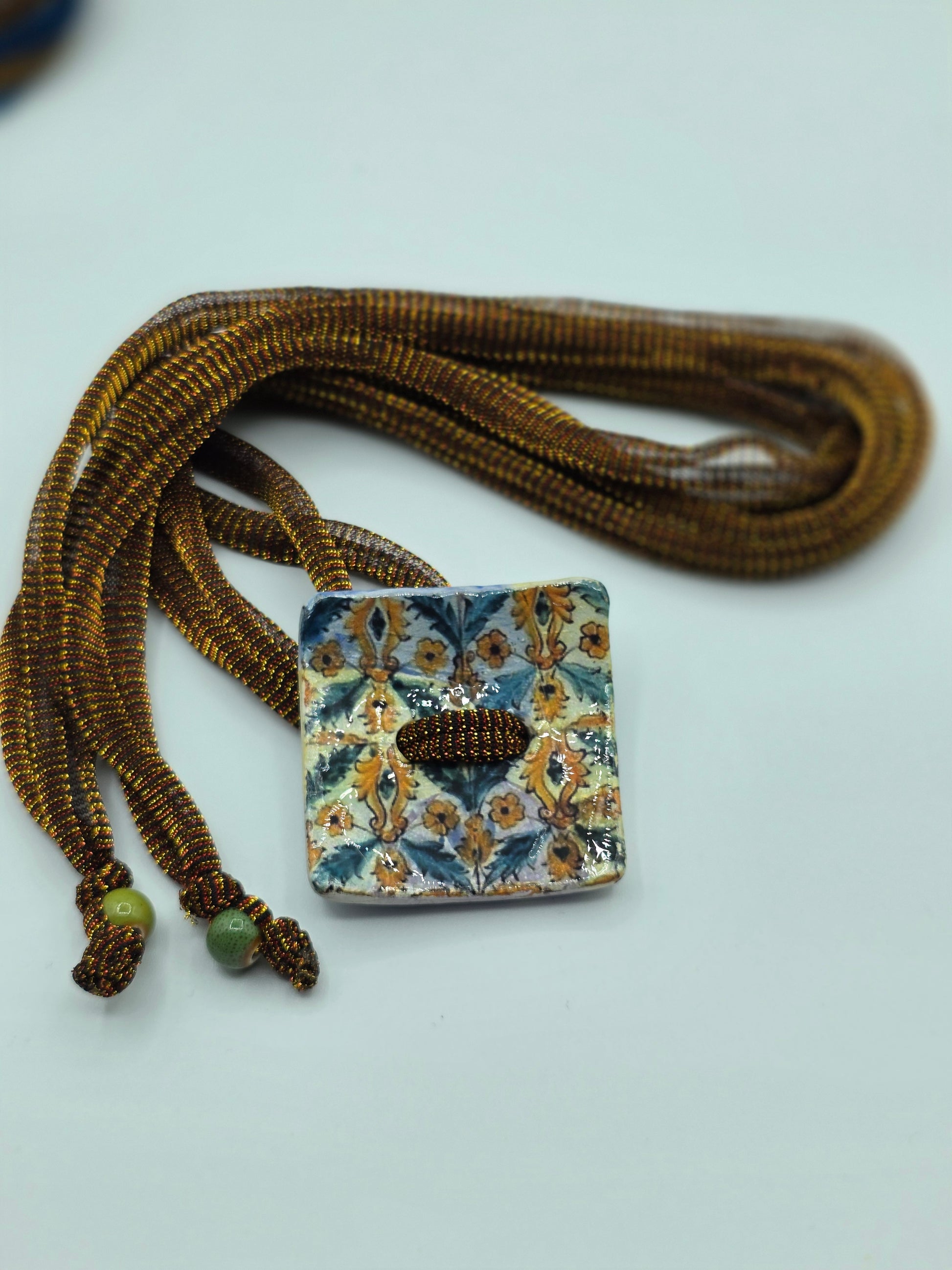 Aggiungi un tocco di autenticità al tuo stile con questo bracelet Zellidj algerino, interamente fatto a mano. Il suo design artigianale permette di trasformarlo facilmente in una collana o in una cintura, offrendo una versatilità unica per ogni occasione. Un gioiello moderno che celebra il ricco patrimonio tradizionale, consentendoti di creare look varie ed eleganti.