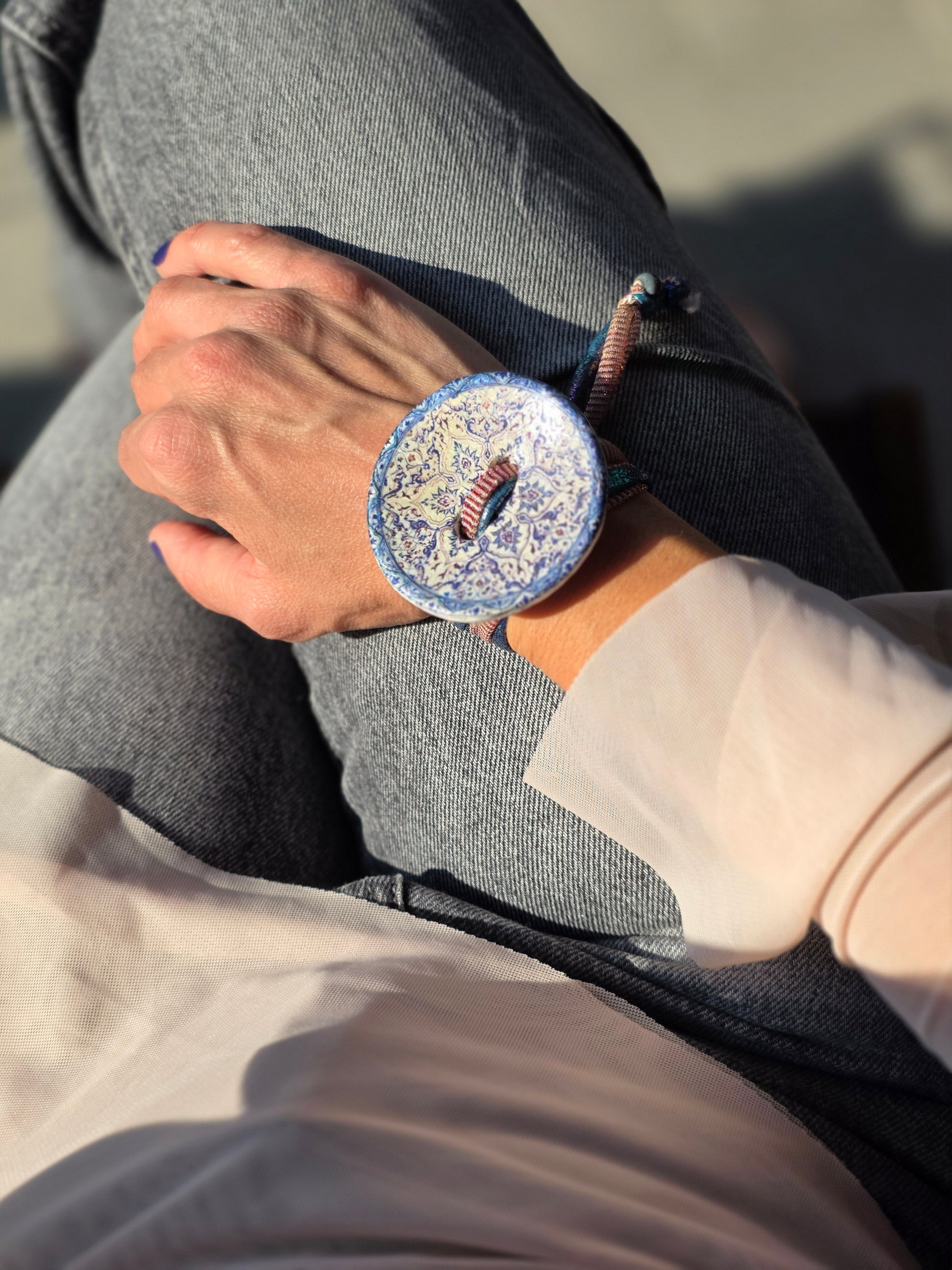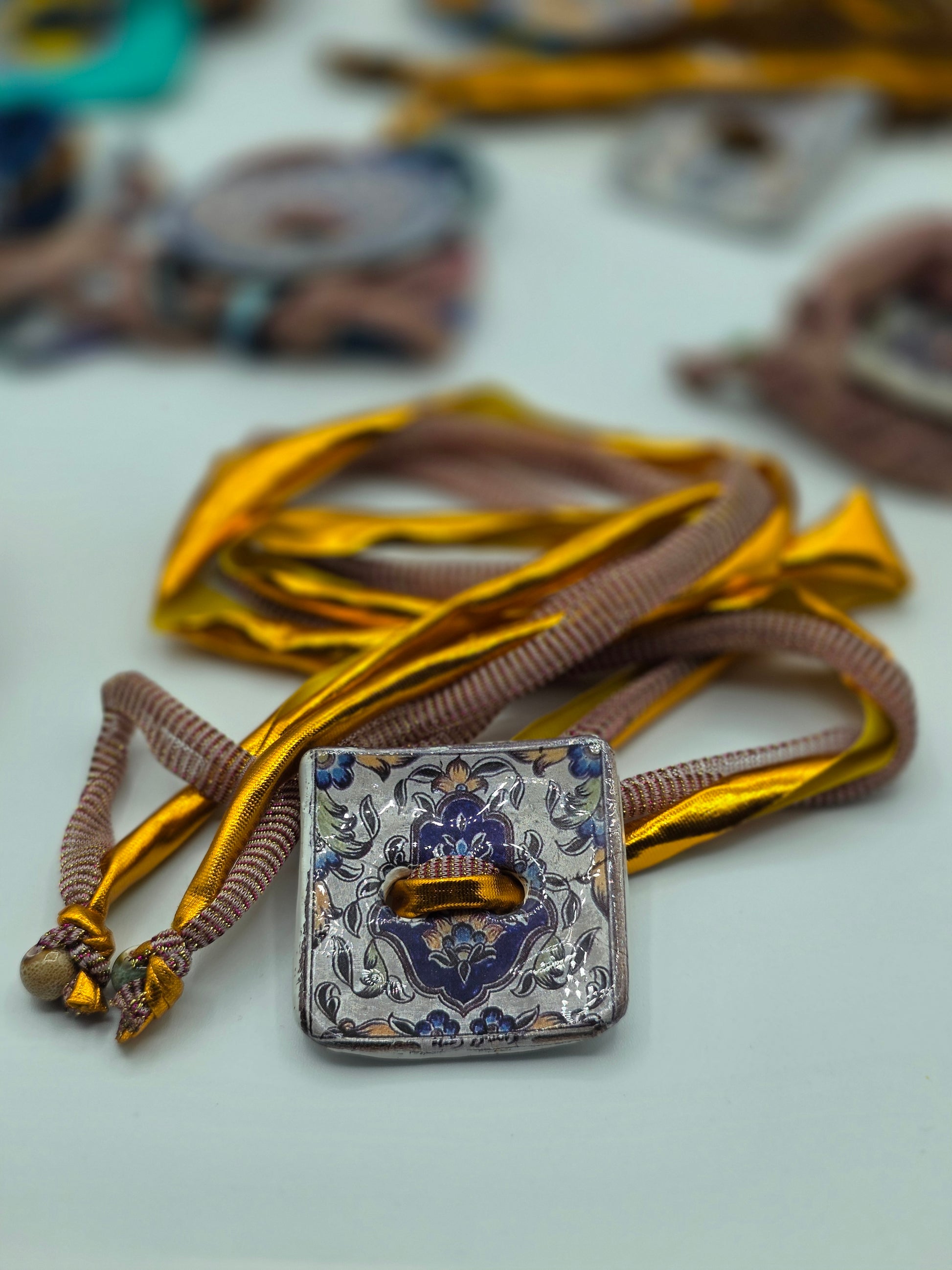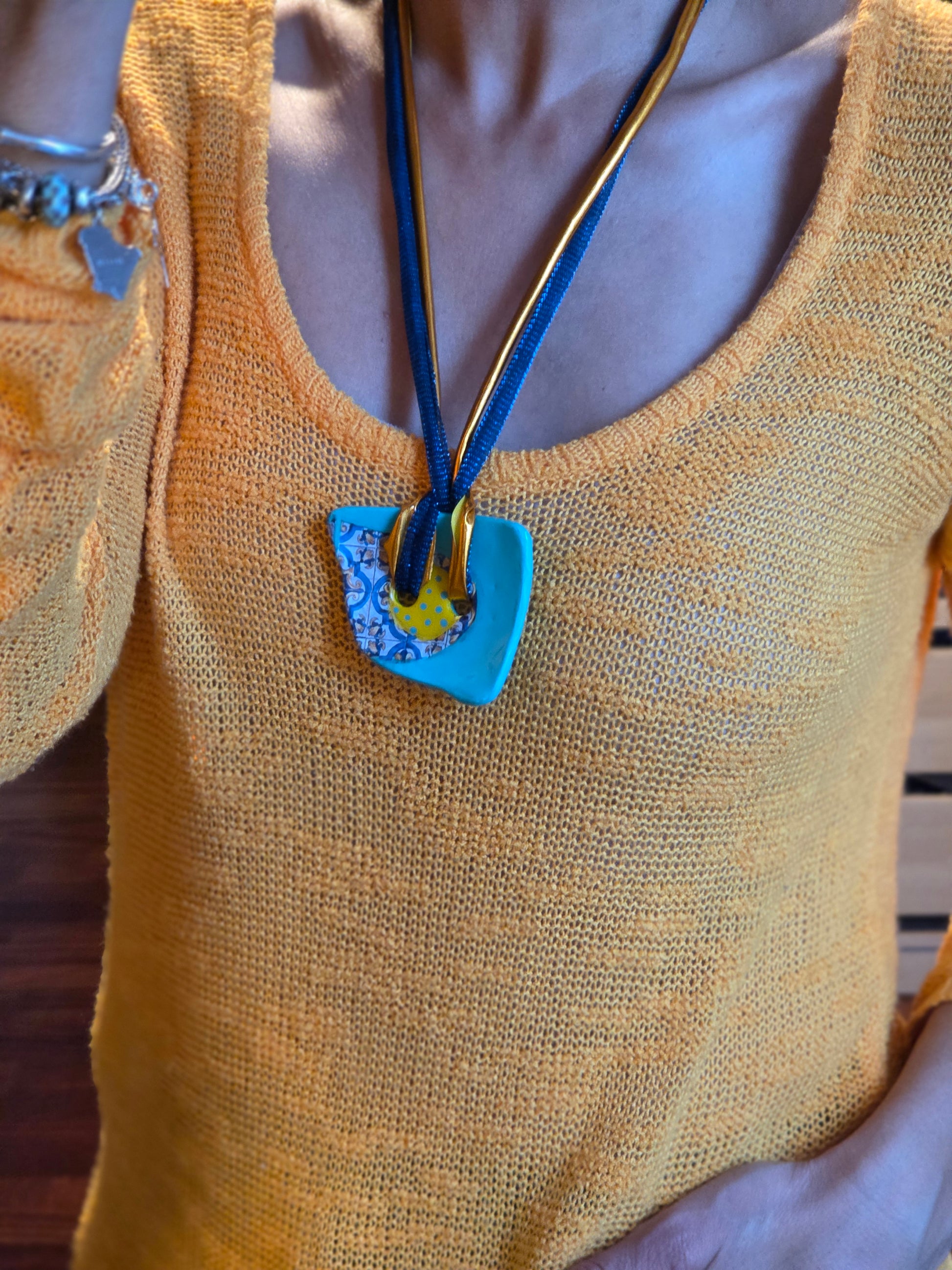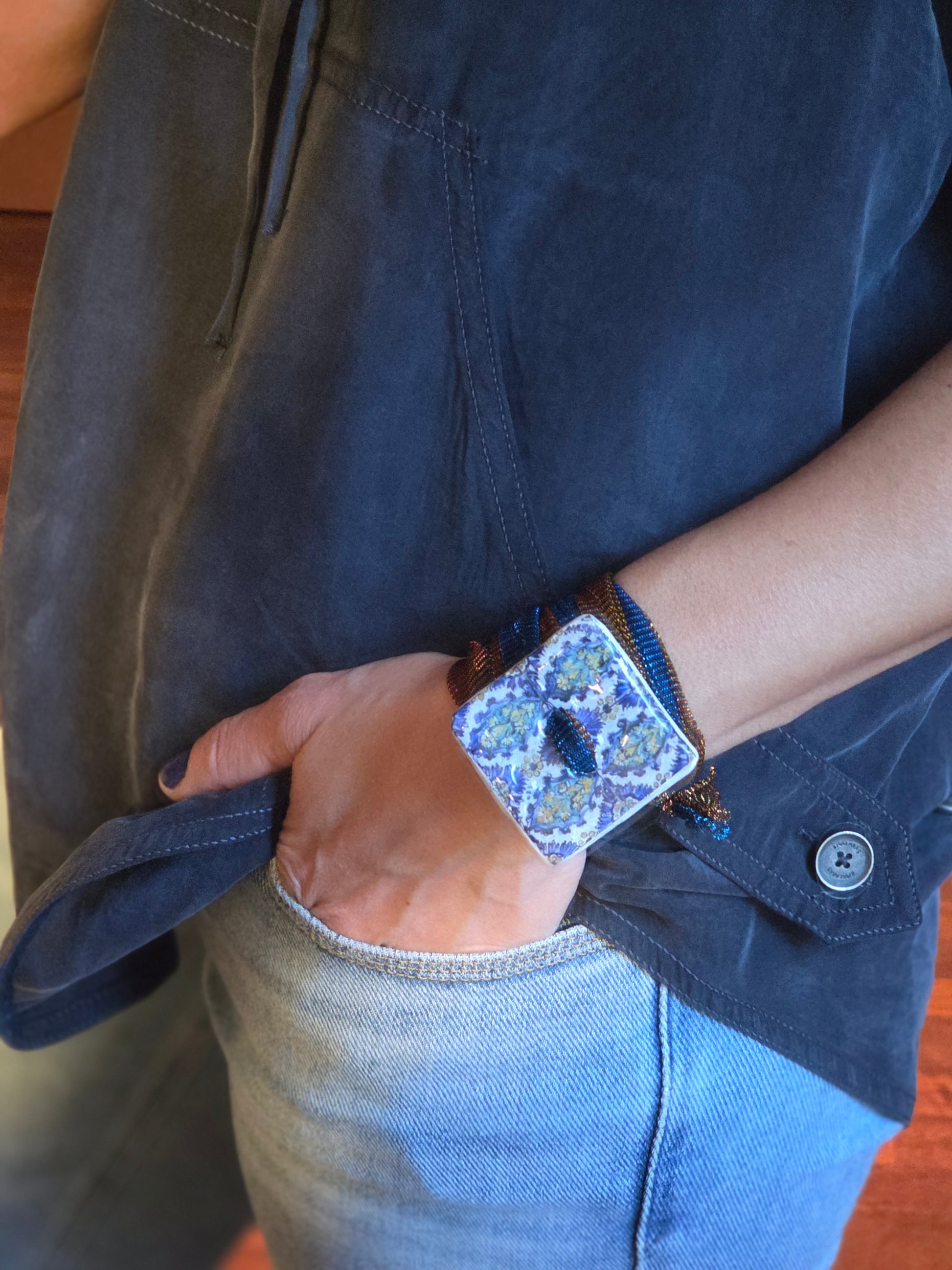 Aggiungi un tocco di autenticità al tuo stile con questo bracelet Zellidj algerino, interamente fatto a mano. Il suo design artigianale permette di trasformarlo facilmente in una collana o in una cintura, offrendo una versatilità unica per ogni occasione. Un gioiello moderno che celebra il ricco patrimonio tradizionale, consentendoti di creare look varie ed eleganti.